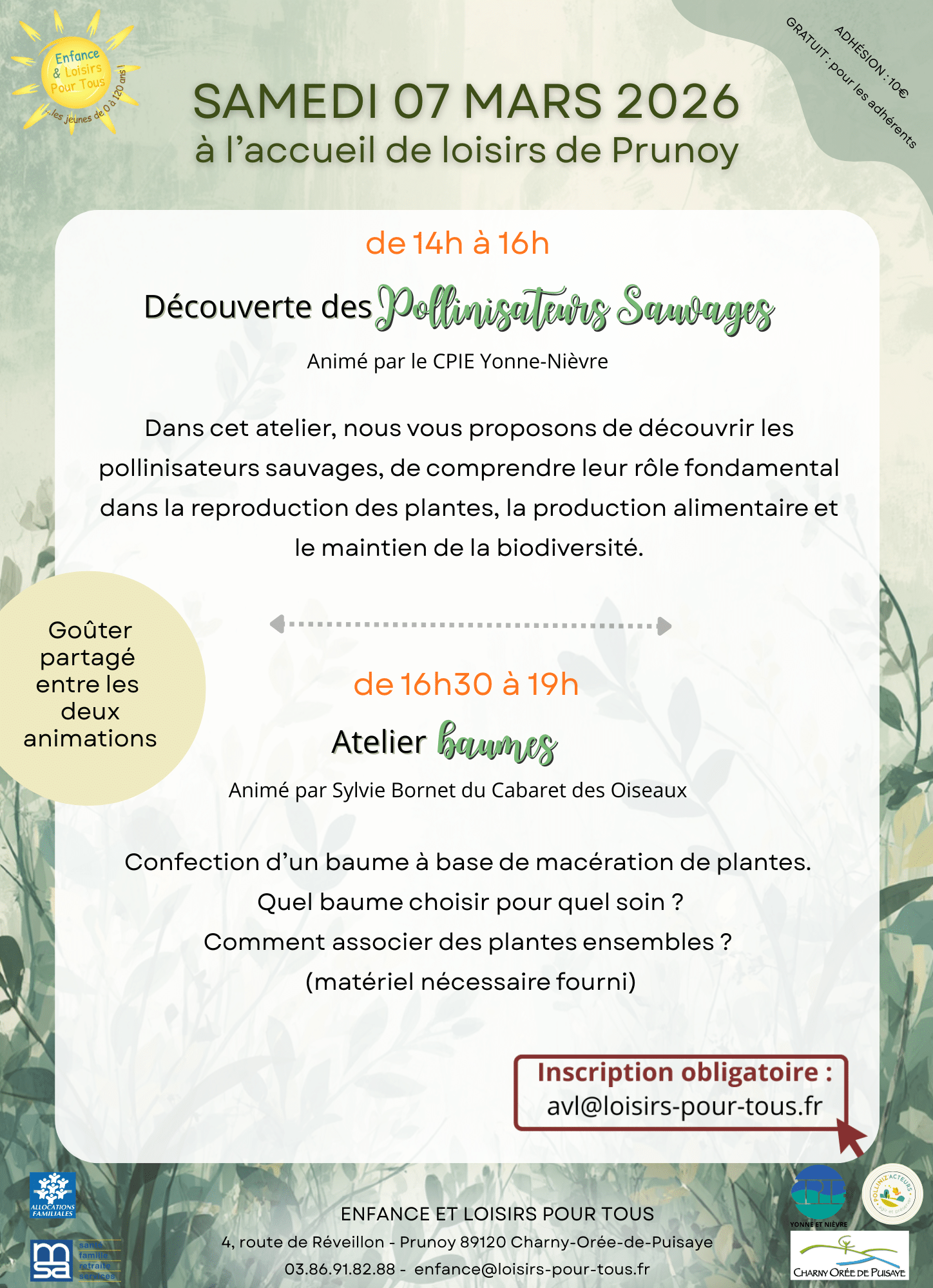 L’association Enfance et Loisirs pour Tous vous invite à partir de 14h00 à une immersion passionnante dans le monde des pollinisateurs sauvages, lors d’ateliers animés par le Centre Permanent d’Initiatives pour l’Environnement (CPIE).