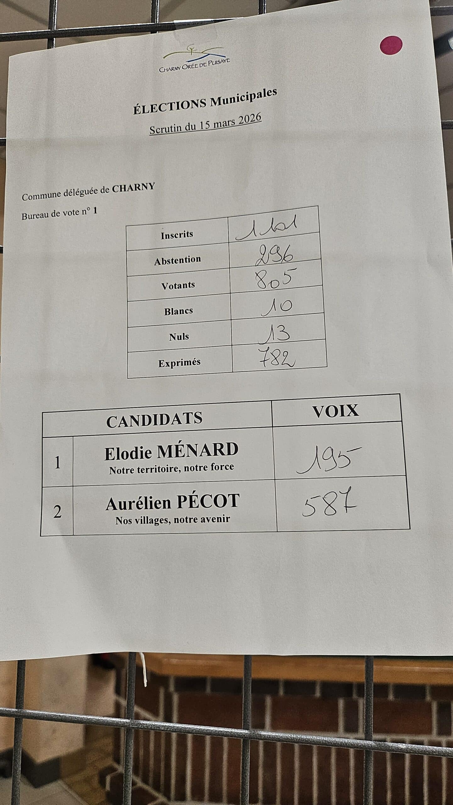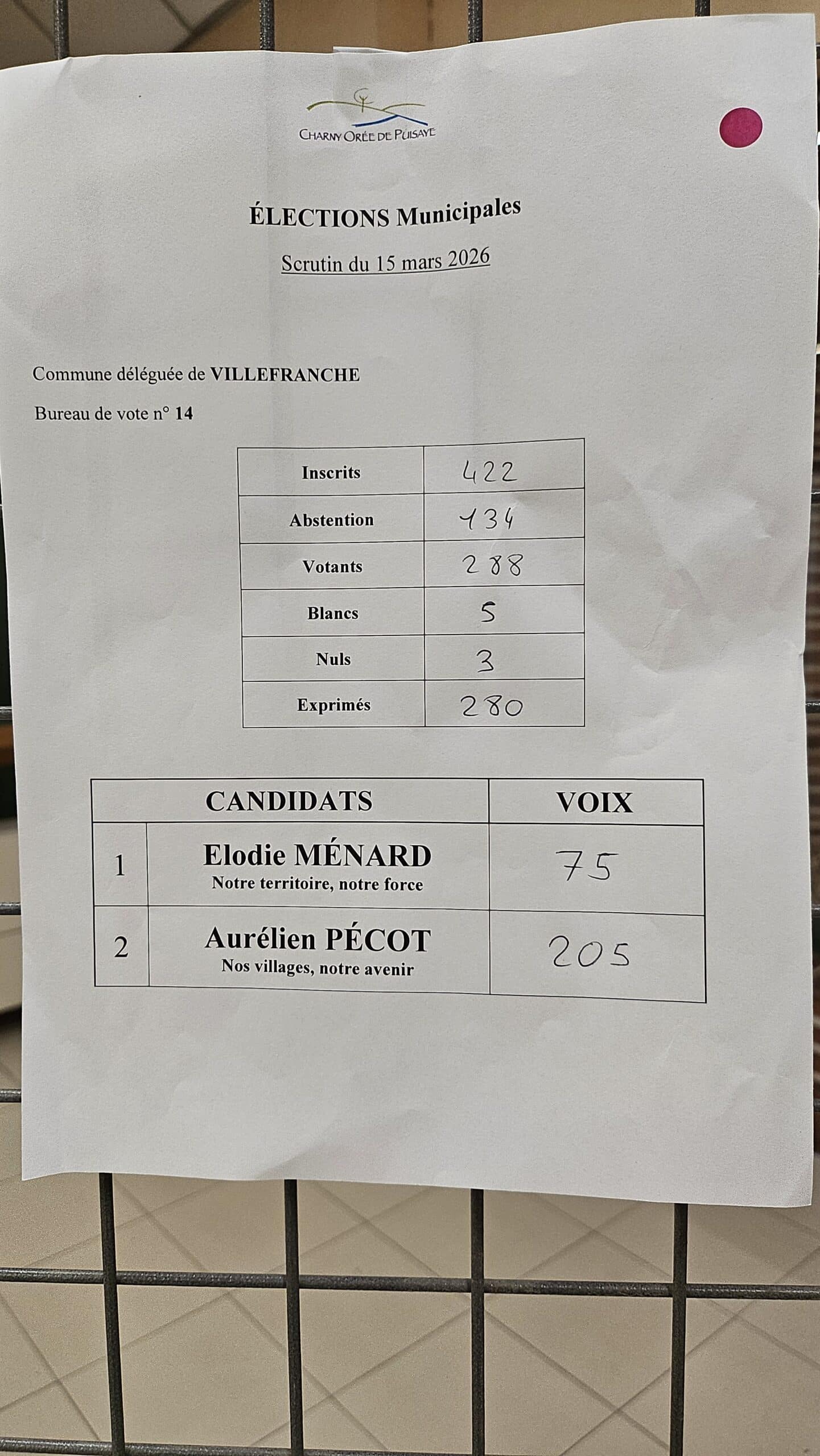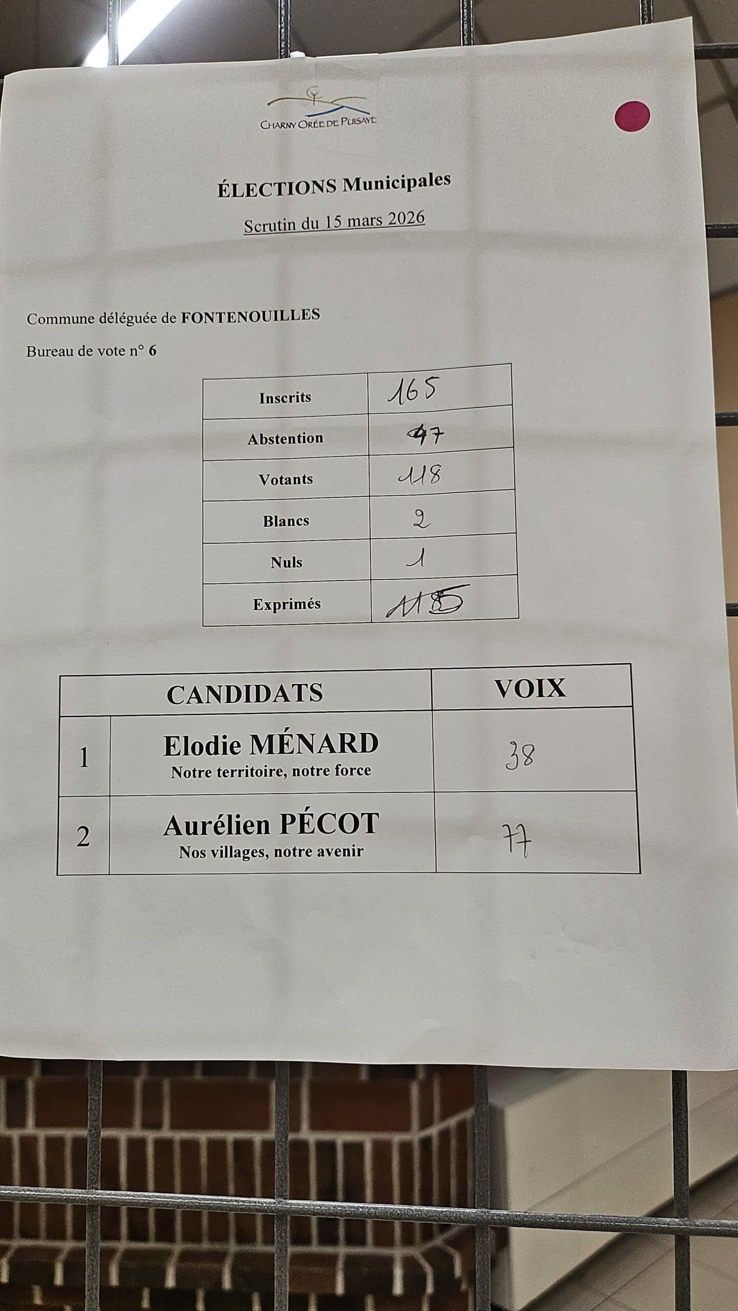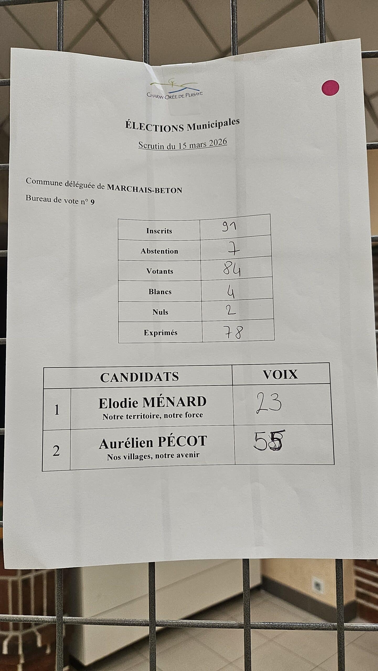 Résultats des élections municipales à Charny Orée de Puisaye