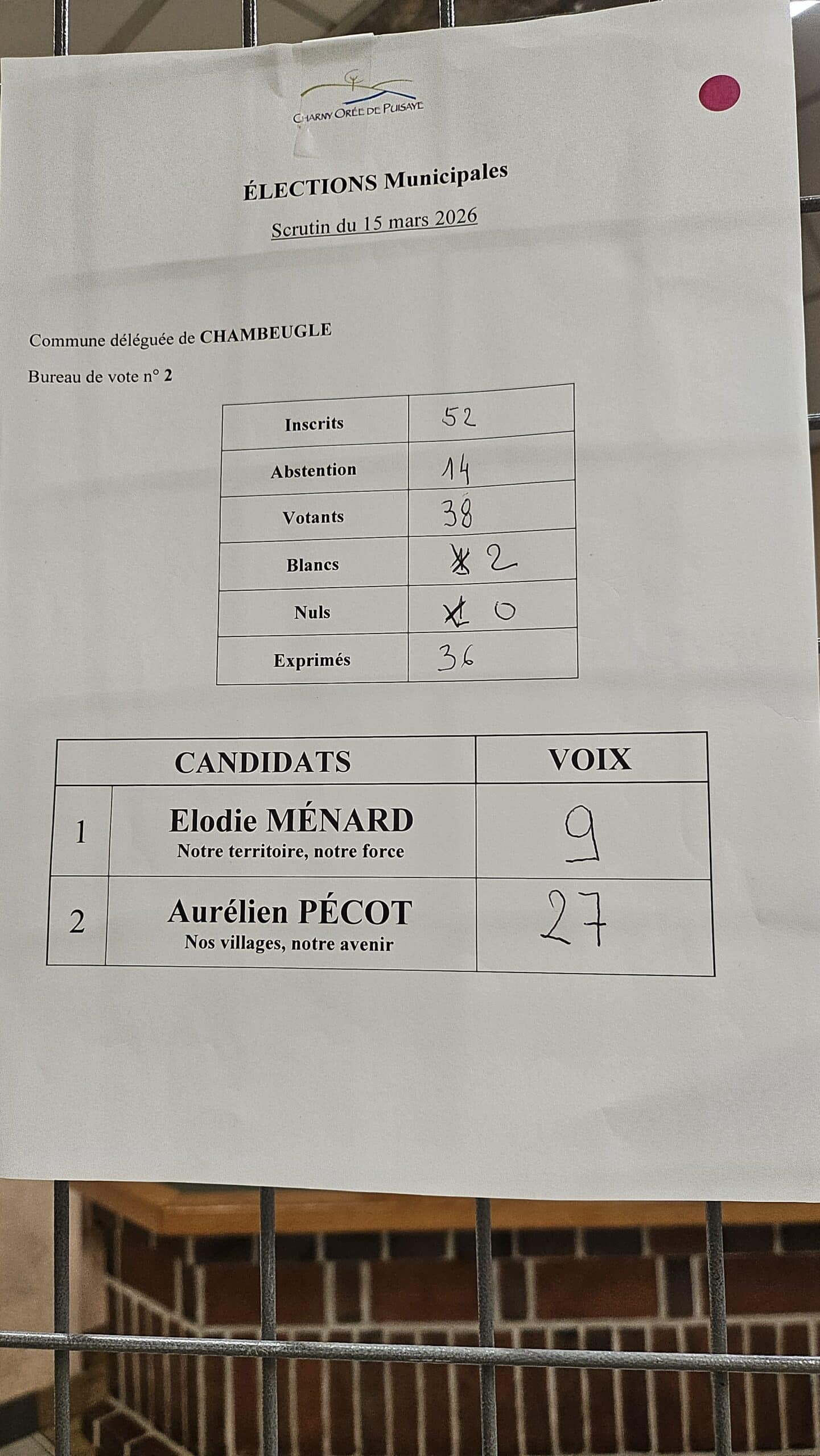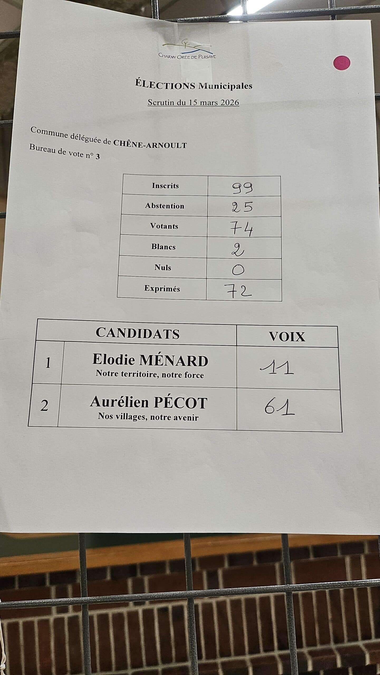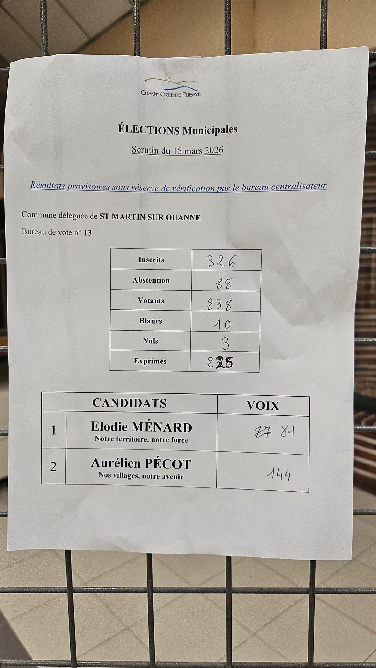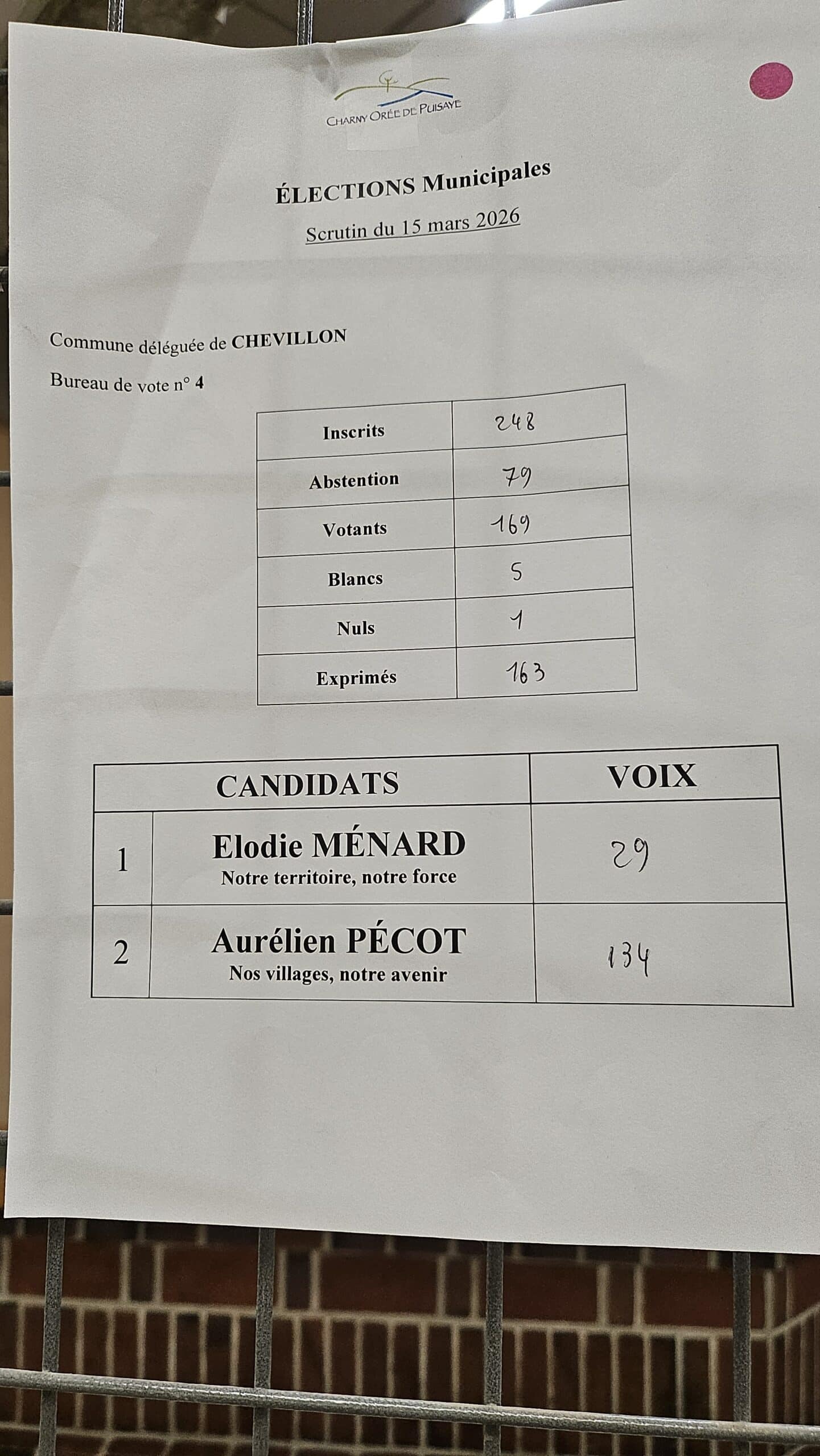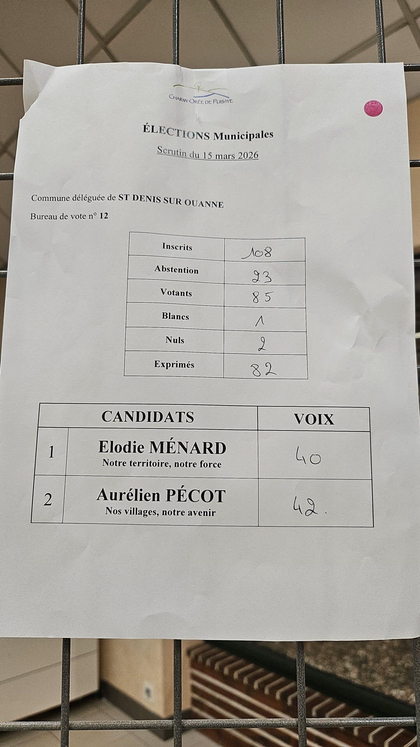 Résultats des élections municipales à Charny Orée de Puisaye