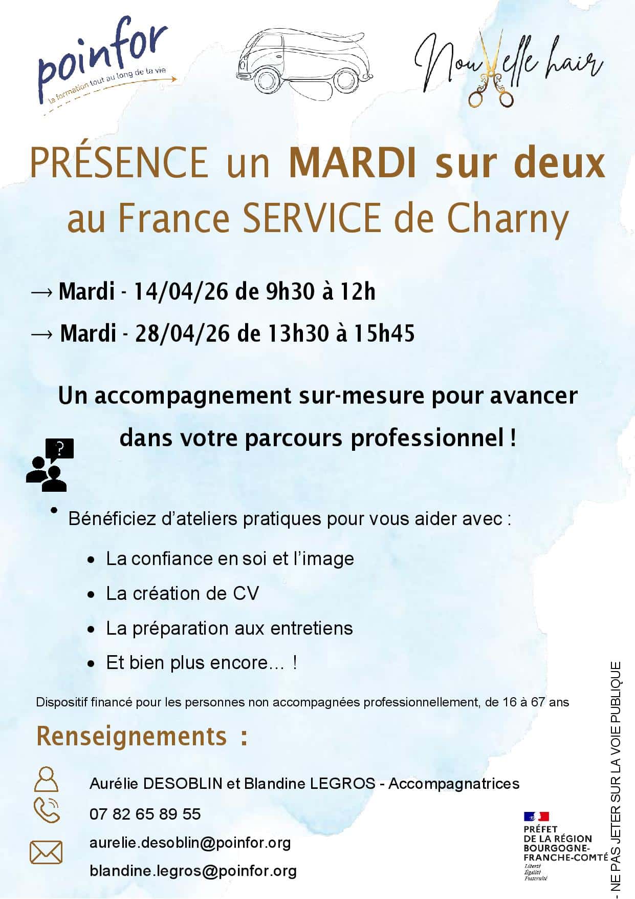 Le service Nouvelle Hair est présent 2 fois par mois à Charny. (parking France Services ou parking derrière la bibliothèque).