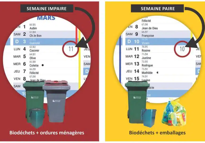 Sur le territoire de la commune, le ramassage des déchets est fait le lundi matin (les poubelles doivent être sorties la veille au soir).